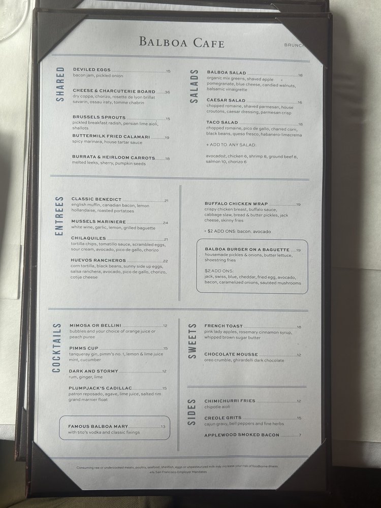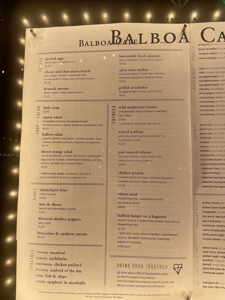 Balboa Cafe, a beloved establishment in San Francisco since 1913, exudes old-world charm with a modern twist. This women-owned restaurant offers a diverse menu of delicious dishes, such as the Caesar Salad with Parmesan cheese and garlic croutons, the Balburrito filled with scrambled eggs, chorizo, and avocado salsa, and the Pan Seared American Red Snapper with saffron jasmine rice. The ambiance is vibrant and lively, making it a perfect spot for cocktails and a girl's night out. Many customers rave about the famous espresso martini and the crispy chimichurri fries. Whether you're looking for a casual hangout or a delicious dining experience, Balboa Cafe has something for everyone. Don't forget to try their popular Vegan Options and take advantage of their outdoor seating and happy hour specials. Visit Balboa Cafe on Thursdays, Fridays, or Saturdays for the best experience.